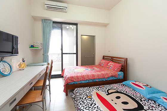 溫馨舒適的空間,柔軟的大床等帶著疲憊的旅人,玩了一整天,盥洗後躺在床上觀賞電視更是一大享受!房內設有落地窗與陽台,在陽光灑下間醒來,更是幸福的好時光。會員好康再享,入住即免費升等四人房!